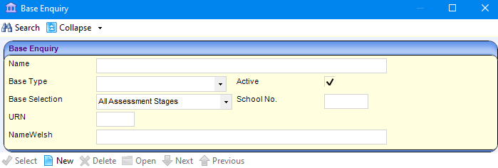 - Click the Base browse button to display the Base Enquiry dialog.