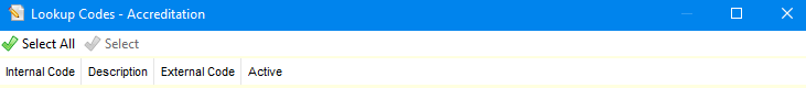 - Click the Add button to display the Lookup Codes dialog.