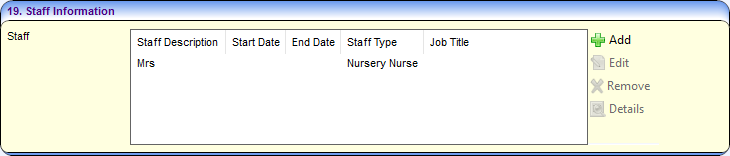 To display the Staff Details for a staff member, select them and click the Details buton.