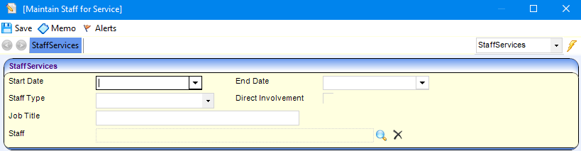 - Select the required person and click the Select button to display the Maintain Staff for Service dialog.
