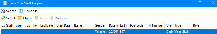 - Click the browse button to display the Early Years Staff Enquiry dialog.