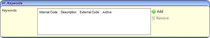 - Click the Add button to display a list of available keywords (Lookup table ID: 1115).
