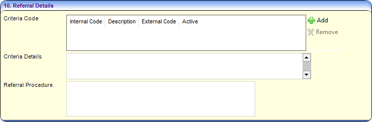 - If required, enter Criteria Details and Referral Procedure.