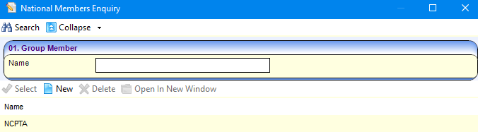 - Click the Add button to display the National Members Enquiry dialog.
