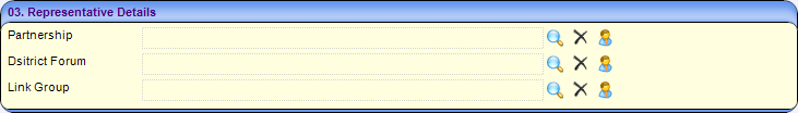 Representatives on particular groups and forums are displayed on the Representative Details panel. A new representative can be selected. To select a new representative for a role: