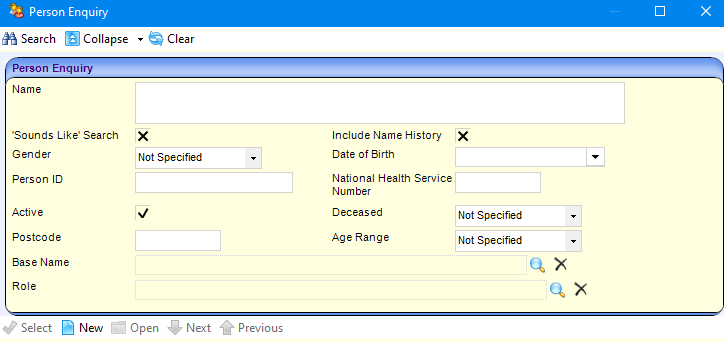 - Click the browse button to display the Person Enquiry dialog.