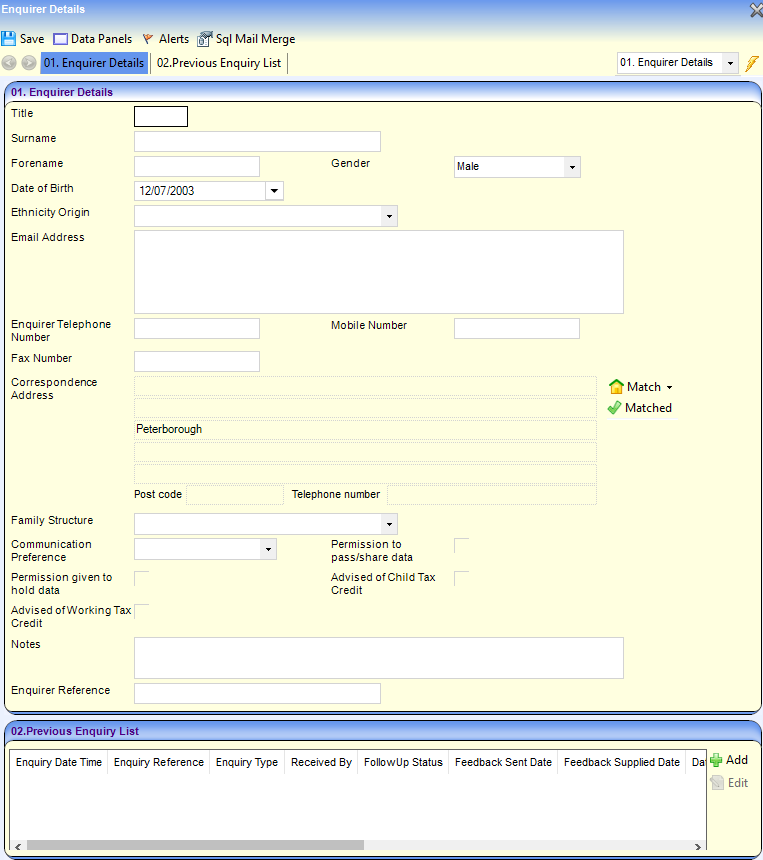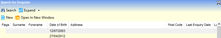 - Highlight the required record and click the Open In New Window button to display the Enquirer Details page.