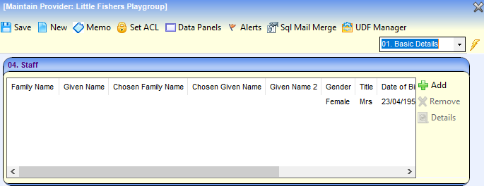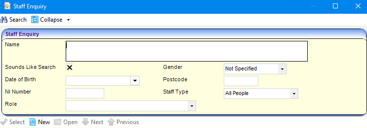 If the required person is not listed as a member of staff, they can be added from the Staff Enquiry page which is accessed via the Maintain Provider page or the Staff focus.