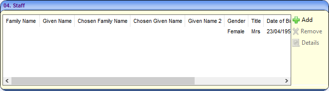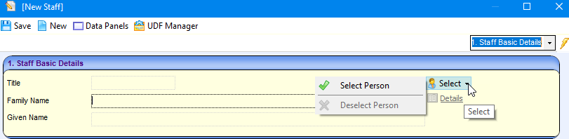 - Highlight the required person and click the Details button to display the Staff Detail page.