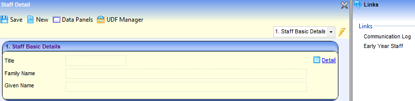 - On the Staff Enquiry page, click the New button to display the New Staff window.