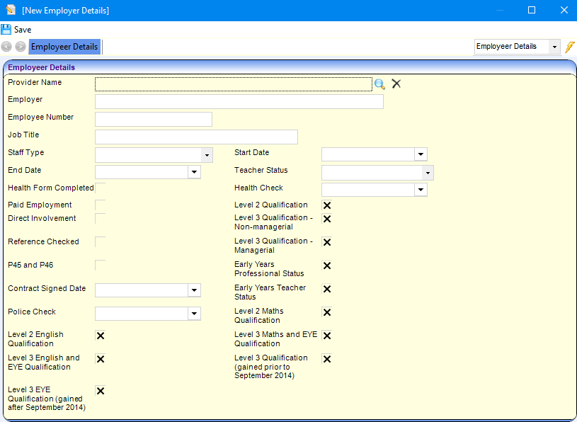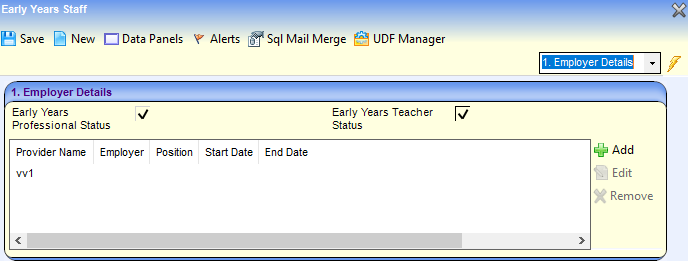 - Click the Early Year Staff link to display the Early Years Staff page.