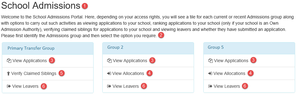 | 7 | HomePage_NoOptionsAvaliable | Displayed if there are no active applications for any live transfer groups for your school. |