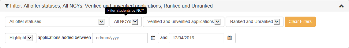 Use the Highlight drop-down menu to select whether you want to filter the list by the selected date range or highlight the applications that were added within that range instead. - Late applications