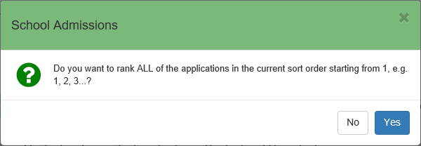 - Click the Rank list in current order button. A confirmation dialog is displayed.