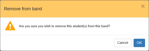 - Click the Remove button for each student you want to remove from the band . A confirmation dialog is displayed.