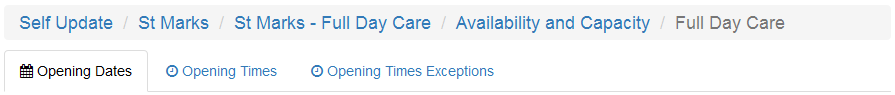 - Select Opening Dates, Availability, Age Range, Capacity Details or Vacancies as required.