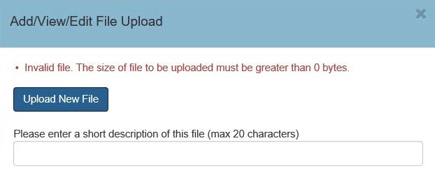Invalid file. The size of file to be uploaded must be greater than 0 bytes.