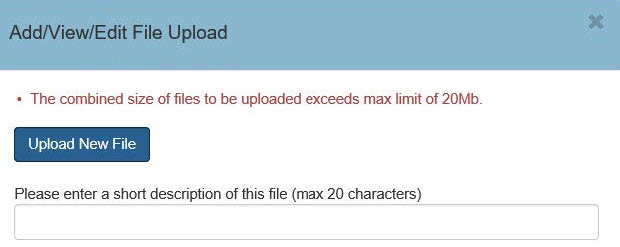 - The combined size of files to be uploaded must not be greater than 20Mb
