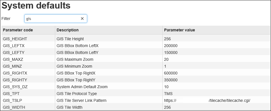 GIS configuration values for the Map&GeoLocation tab can be managed within the v4 online | Administration | System Admin | System Administration | System Defaults area. Users need to refer to existing configuration information for the values.