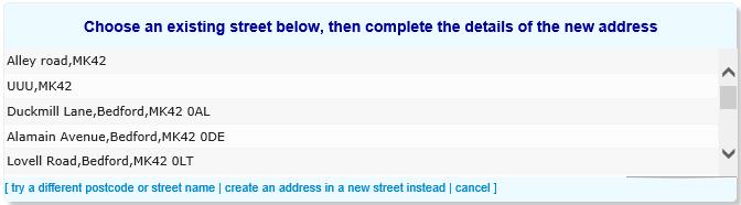 If searching by UPRN a Street or Postcode will need to be entered manually.