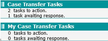 The Case transfer screen is launched to display the current Status of each request that has been received/sent.