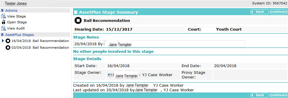 - In the AssetPlus panel, click the Stage Name of the required AssetPlus stage to display the AssetPlus Stage Summary screen.