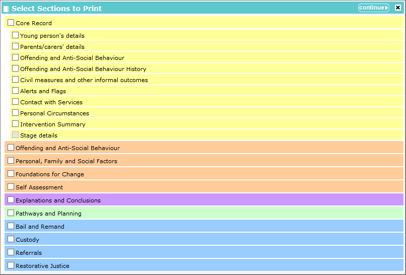 - Click the Print Friendly View hyperlink to display the Select Sections to Print dialog.