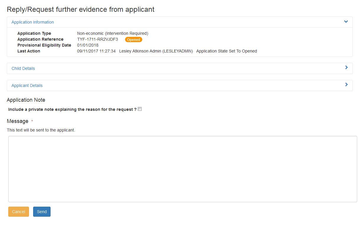 - Click the Reply/Request further evidence from applicant button.