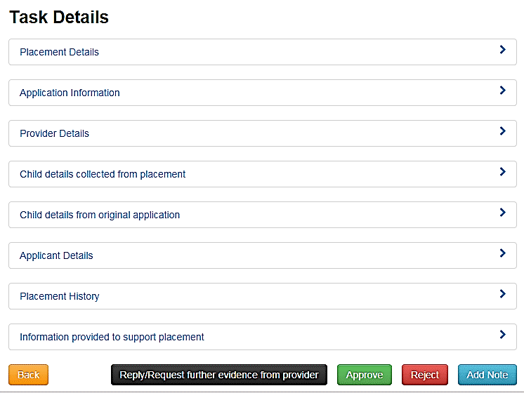 A placement cannot be processed until the child’s application has been approved and the child’s record has been cleared via the Portal Back Office.