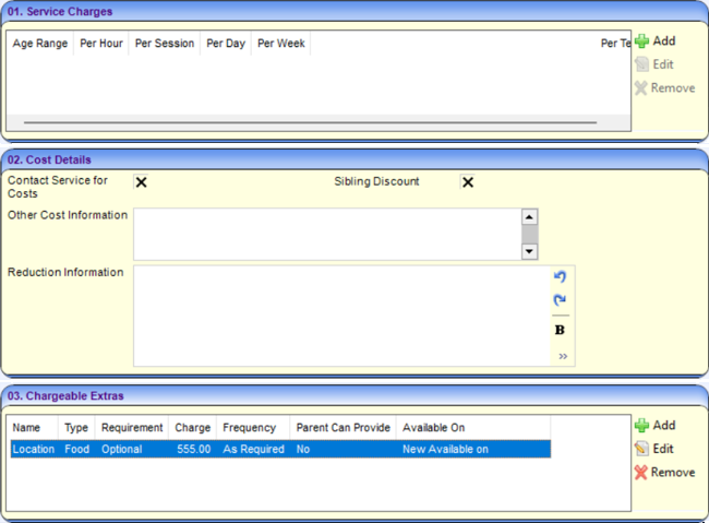 Focus/Early Years/Search Service Provision/<provider or service>/Service Charges (from links panel)/03. Chargeable Extras