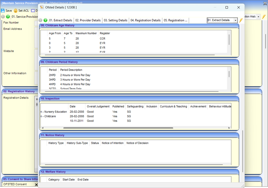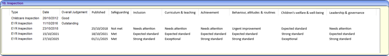 Early Years | Search Service Provision > Maintain Service Provision > 02. Registration History > OFSTED Information > 10. Inspection