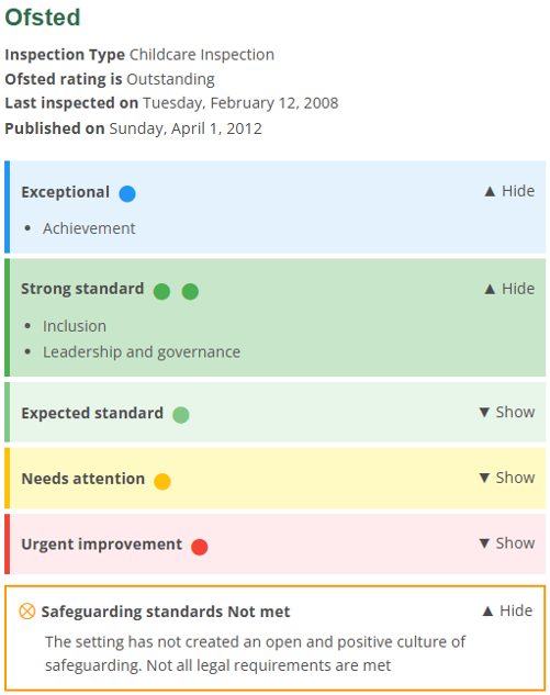 Ofsted results have been removed from the provider profile tiles. They now display in report card format. Enables users to make more informed decisions on which provider to use.