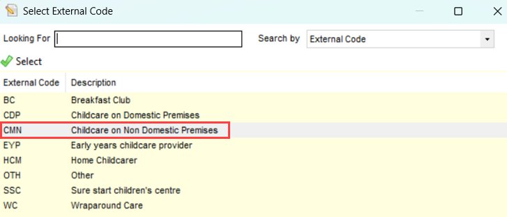 - Description: Childcare on Non Domestic Premises