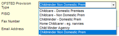 Childminder Non Domestic Prem added to Ofsted Provision Type in Maintain Service Provision > Service Provision Details.